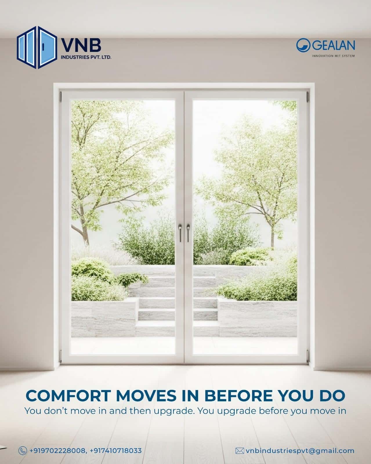 VNB Industries Pvt. Ltd. is a leading manufacturer of uPVC windows, uPVC doors, aluminium windows, aluminium doors and advanced system windows based in Pune, Maharashtra. We deliver high-performance fenestration solutions combining strength, aesthetics, and energy efficiency.